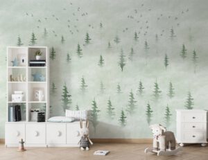 Çocuk odaları için özel olarak tasarlanmış bu su yeşili duvar kağıdı, sakinleştirici orman ve kuş siluetleriyle huzurlu bir ortam yaratır. Yumuşak tonları ve sade doğa teması sayesinde bebek, çocuk ya da oyun odalarında ideal bir seçimdir. Kendinden yapışkanlı veya tutkallı uygulama seçenekleri mevcuttur. Hayal gücünü destekleyen zarif bir dekorasyon unsurudur.