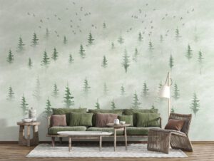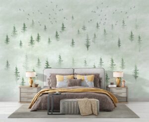 Sisli Orman Manzaralı Ağaç Desenli Duvar Kağıdı