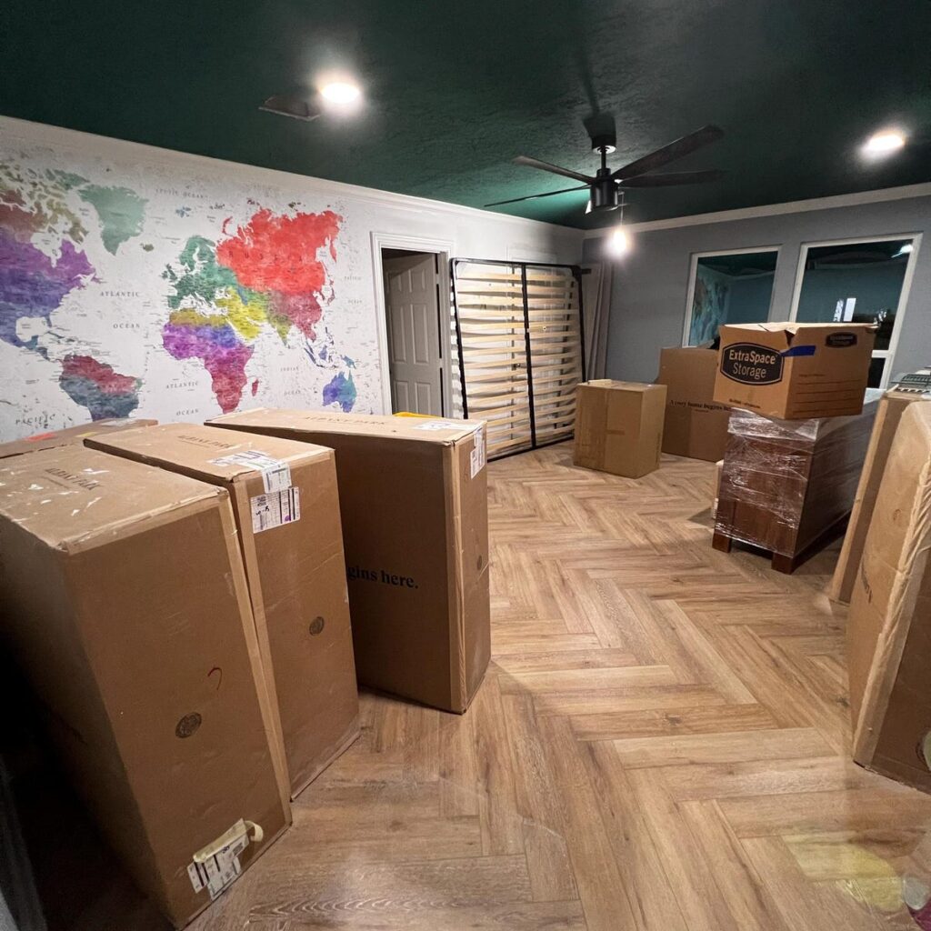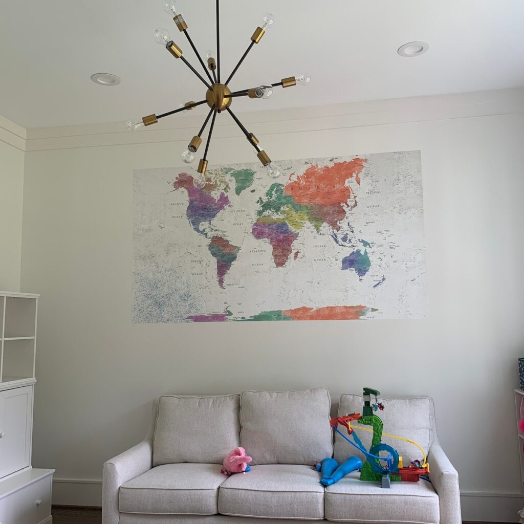 Görünüşü güzel, hizalamak biraz zor ve çok yapışkan, bu yüzden dikkatli olun ve ilk parçayı yapıştırmadan önce düzgünce hizaladığınızdan emin olun, bir parça düzgün değilse hepsi bozulur… ama sonunda, her şeyi hizaladıktan sonra oyun odasında harika görünüyor.