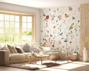 Pastel tonlarda suluboya tarzında kuşlar, çiçekler ve kelebeklerle süslenmiş bu duvar kağıdı, iç mekanlara neşeli ve huzurlu bir atmosfer kazandırır. Yumuşak renk paleti sayesinde çocuk odaları, genç odaları, bebek odaları veya dinlenme köşeleri için idealdir. Hem kendinden yapışkanlı hem de geleneksel tutkal uygulamalı seçenekleri mevcuttur.