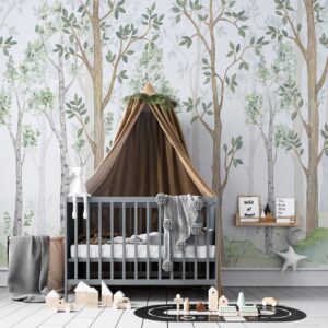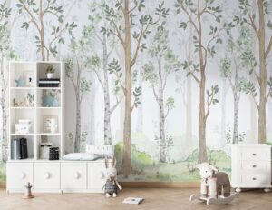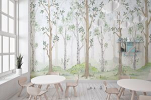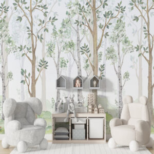 Suluboya Orman Desenli Çocuk Odası Duvar Kağıdı