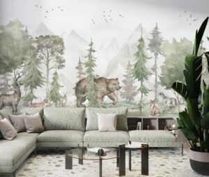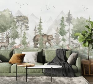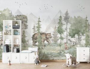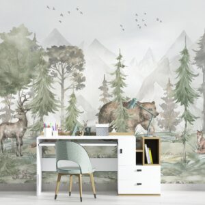 Suluboya Orman Hayvanları Çocuk Odası Duvar Kağıdı