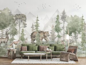 Çocuğunuzun odasını sevimli orman hayvanları ve masalsı bir doğa manzarasıyla süsleyin! Bu suluboya efektli duvar kağıdı, miniklerin hayal gücünü harekete geçirecek ayı, tilki, kurt ve tavşan gibi dost canlısı karakterlerle dolu. Yumuşak pastel tonları ve huzurlu orman atmosferi, bebeğinizin veya çocuğunuzun odasında sakinleştirici ve sıcak bir ortam yaratır; uykuya dalmalarını kolaylaştırır ve oyun zamanlarını daha keyifli hale getirir. Bu eğitici ve estetik tasarım, doğa sevgisini erken yaşta aşılamak için de harika bir yoldur. Kişiye özel ölçülerde, pratik kendinden yapışkanlı, doğal bir his veren dokulu veya lüks deri desenli malzeme seçenekleriyle sunulur. Çocuğunuzun sağlığı bizim için her şeyden önemli olduğu için Greenguard Gold sertifikalı, tamamen kokusuz ve su bazlı mürekkepler kullanıyoruz.