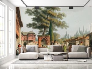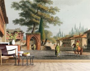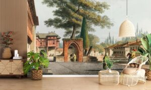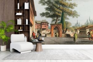 Geçmişin büyüsünü ve kültürel zenginliğini duvarlarınıza taşıyan tarihi han avlusu manzaralı vintage duvar kağıdımızla mekanlarınıza otantik bir hava katın. Bu detaylı illüstrasyon, geleneksel mimarinin zarafetini, o dönemin yaşamından kesitleri ve nostaljik bir atmosferi evinize getiriyor. Figürlerin, taş yapıların ve merkezi avlunun sıcak tonlarla betimlendiği bu tasarım, duvarlarınıza sanatsal bir derinlik ve hikaye katacak. İstediğiniz ölçülerde, duvarlarınıza mükemmel uyum sağlayacak şekilde üretilen bu duvar kağıdını; kolay uygulanabilir kendinden yapışkanlı, zengin bir dokunuş sunan dokulu veya sofistike bir hava katan deri desenli olmak üzere üç farklı malzeme seçeneğiyle beğeninize sunuyoruz. Üretimde kullanılan Greenguard Gold sertifikalı, kokusuz su bazlı reçine mürekkepler sayesinde hem çevre dostu hem de sağlığınız için güvenlidir. Türkiye’nin dört bir yanına gönderim imkanıyla bu eşsiz tasarıma sahip olabilirsiniz.
