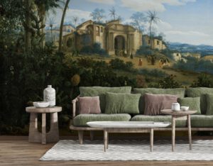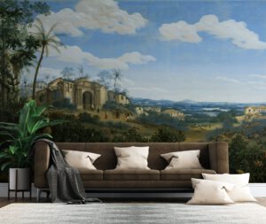 Doğanın içinde kaybolmuş tarihi kalıntıların büyüleyici manzarasını yansıtan bu klasik sanat duvar kağıdı, her mekâna zarafet ve tarih dolu bir atmosfer katıyor.