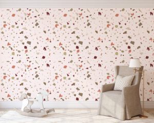 Bu terrazzo desenli duvar kağıdı, mekanınıza modern bir hava katmak için mükemmel bir tercihtir. Kendinden yapışkanlı ya da geleneksel seçenekleriyle oturma odası, yatak odası veya ofis gibi mekanlarda kullanılabilir. Şık ve estetik bir tasarımla alanınızı yenileyin.