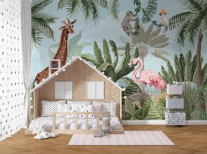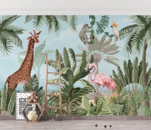 Doğanın büyüsünü çocuk odalarınıza taşıyan bu tropikal hayvanlar temalı duvar kağıdı, flamingolar, maymunlar ve gergedanlarla dolu. Sevimli karakterler ve yeşil doğa manzarası ile odanıza neşe katın. Kendinden yapışkanlı veya geleneksel seçenekler mevcut.