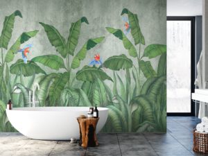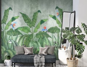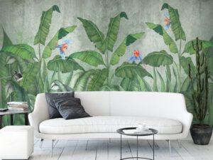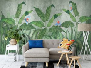 Tropikal kuşlar ve muz yaprakları temalı bu duvar kağıdı, odanıza doğanın taptaze havasını katacaktır. Canlı renkler ve doğa unsurları ile modern bir dekorasyon oluşturmak için mükemmel bir seçenek olan bu tasarım, kendinden yapışkanlı veya geleneksel tutkal ile uygulanabilir. Bu duvar kağıdı, oturma odası, yatak odası gibi çeşitli alanlarda kullanılabilir.