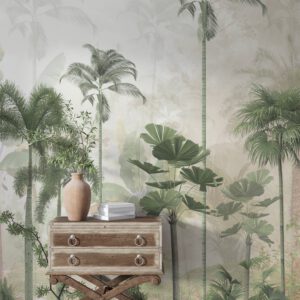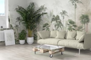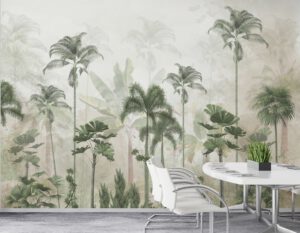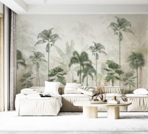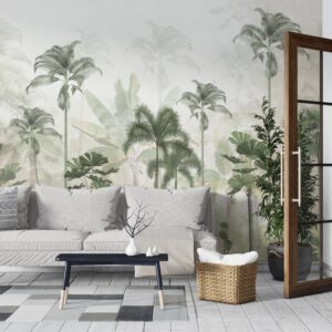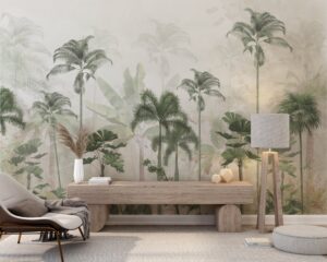 Doğanın tazeliğini iç mekâna taşıyan bu tropikal palmiye ağaçları temalı duvar kağıdı, özellikle yatak odası ve dinlenme alanları için ideal bir atmosfer yaratır.