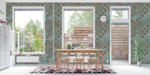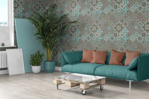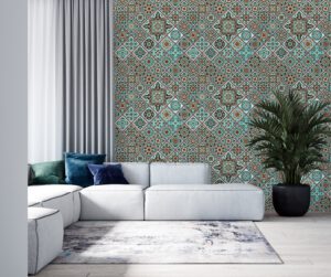 Turkuaz tonların hâkim olduğu bu Fas esintili etnik desenli duvar kağıdı, salon, oturma odası ve koridorlara canlılık ve karakter kazandırır. Evinize Akdeniz dokunuşu katmak için mükemmel bir seçimdir. Kendinden yapışkanlı ve tutkallı uygulama seçenekleriyle sunulur.