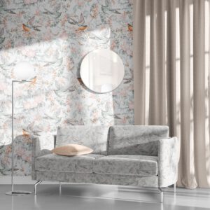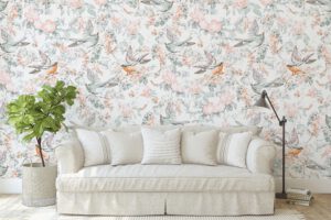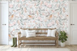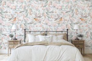 Uçan Kuş ve Çiçek Desenli Duvar Kağıdı