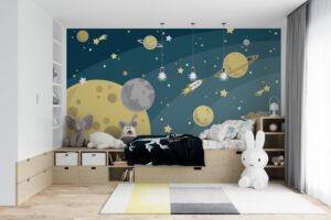 Uzay Temalı Çocuk Odası Duvar Kağıdı