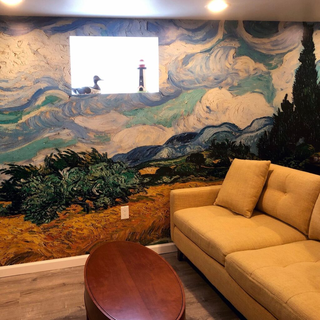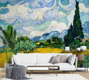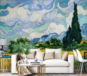 Vincent van Goghun dünyaca ünlü ‘Buğday Tarlası ve Serviler’ tablosundan ilham alan bu duvar kağıdı, yaşam alanlarınıza eşsiz bir sanat eseri atmosferi katıyor.