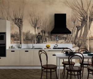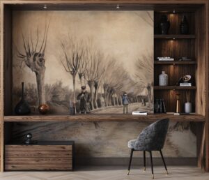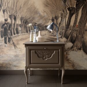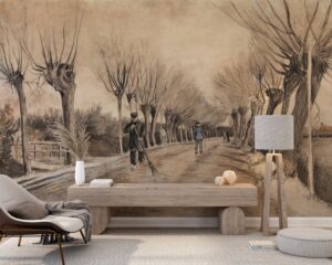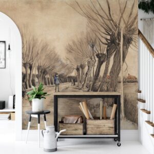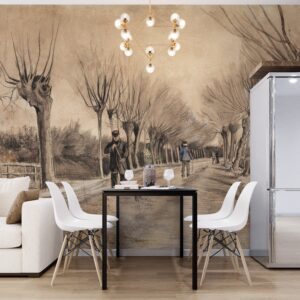 Vincent Van Gogh’un ikonik ‘Etten’de Yol’ (Road in Etten) adlı eskizini evinize taşıyan bu özel tasarım duvar kağıdıyla mekanlarınıza sanatsal bir derinlik ve nostaljik bir hava katın. Ünlü ressamın karakteristik çizgilerini ve perspektifini yansıtan bu eser, ağaçlarla çevrili bir yolu ve figürleri etkileyici bir şekilde betimler. Sepya ve monokrom tonlarıyla bu duvar kağıdı, her ortama sofistike ve kültürel bir dokunuş ekler.