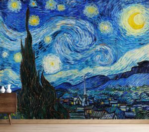 Vincent van Goghun başyapıtı ‘Yıldızlı Gece’ tablosundan ilham alınarak tasarlanan bu duvar kağıdı, mekanlarınıza eşsiz bir sanat ve estetik dokunuş katıyor.