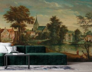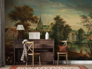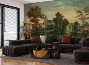 Geçmişin zarafetini ve sanatsal dokusunu mekanlarınıza taşıyan vintage Avrupa köy manzarası tablo efektli duvar kağıdımızla tanışın. Bu etkileyici mural, klasik bir yağlıboya tabloyu andıran detaylarıyla; tarihi bir kiliseyi, sakin bir nehir kıyısını, yemyeşil ağaçları ve dönemin figürlerini canlı bir şekilde betimler. Zengin ve sıcak renk paleti, duvarlarınıza derinlik ve nostaljik bir şıklık katar.