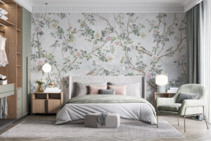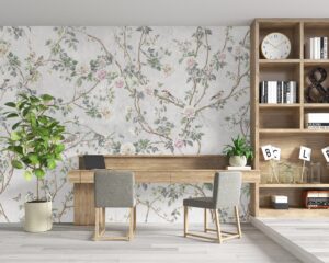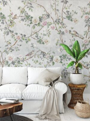 Çiçekli İnce Dal Desenli Duvar Kağıdı