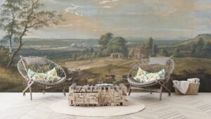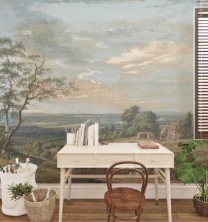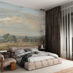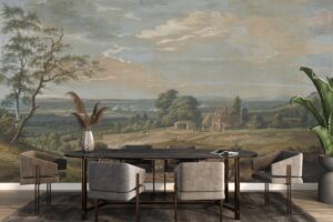 Vintage Pastoral Manzara Desenli Duvar Kağıdı
