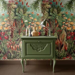 Evinize veya ticari mekanlarınıza sanatsal ve egzotik bir atmosfer katın! Bu benzersiz duvar kağıdı, eski botanik çizimlerini andıran, zengin detaylara sahip vintage bir tropikal orman deseniyle bezenmiştir. Detaylı bitki, çiçek ve mantar illüstrasyonları, canlı renk paleti ve adeta antika bir tabloyu andıran dokusuyla duvarlarınıza derinlik ve eşsiz bir karakter kazandırır. Maksimalist, eklektik veya kolonyal tarzdaki dekorasyonlar için mükemmel bir tamamlayıcıdır. Tamamen sizin belirttiğiniz duvar ölçülerine göre özel olarak hazırlanan bu dijital baskı duvar kağıdını, Türkiye’nin her yerine gönderiyoruz. Pratik kendinden yapışkanlı, zengin dokulu veya lüks deri desenli malzeme seçeneklerinden dilediğinizi tercih edebilirsiniz. Tüm duvar kağıtlarımız, Greenguard Gold sertifikalı, sağlığa zararsız, kokusuz ve su bazlı reçine mürekkepler kullanılarak özenle üretilmektedir. Bu eşsiz vintage orman deseniyle mekanlarınıza nostaljik bir zarafet ve çarpıcı bir ifade katın.