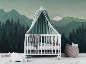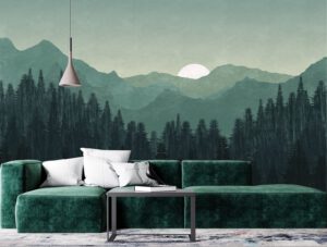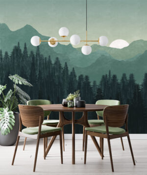 Doğal ormanlı dağ manzarasıyla bu duvar kağıdı, evinize huzurlu bir atmosfer katarken modern bir dokunuş ekler.
