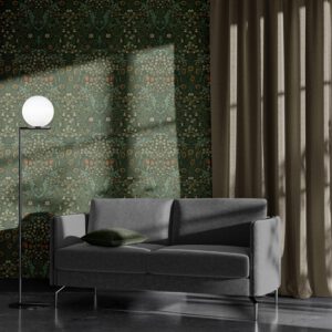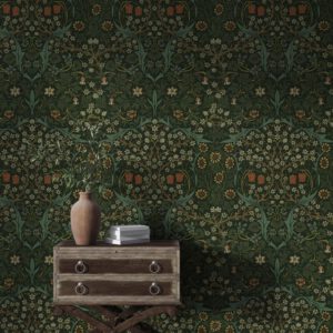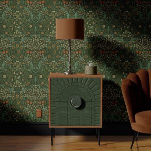 Koyu yeşil fon üzerine işlenen zarif çiçek desenleriyle bu vintage duvar kağıdı, evinize zamansız bir şıklık katar. Salon, oturma odası veya antre gibi alanlarda klasik ve sofistike bir atmosfer yaratmak için idealdir. Kendinden yapışkanlı ya da tutkallı uygulama seçenekleriyle kolayca kullanılabilir.