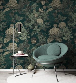 Yeşilin Gizemi Vintage Botanik Desenli Duvar Kağıdı