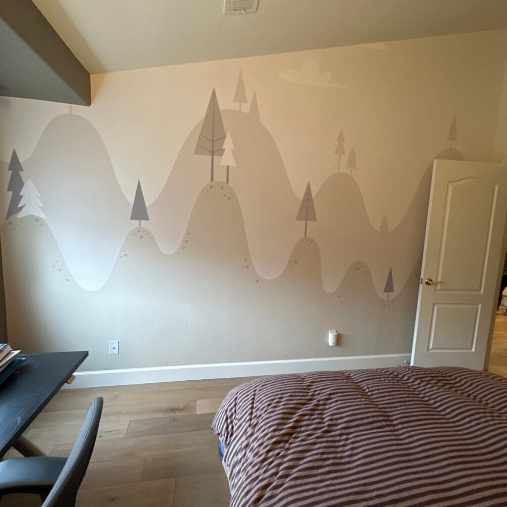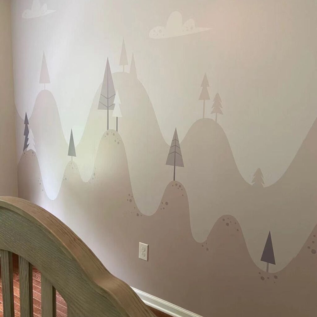 Bebeğinizin odasına huzurlu bir atmosfer katan yumuşak renklerdeki dağlar ve ağaçlar desenli duvar kağıdı, minimalist tasarımı ile sade ve modern bir dekorasyon sunuyor. Kendinden yapışkanlı veya geleneksel tutkal ile uygulanabilir.