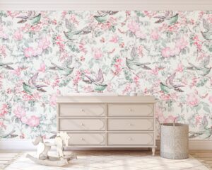 Zarif Çiçek ve Kuş Desenli Vintage Duvar Kağıdı