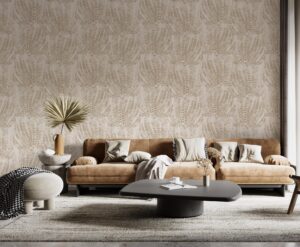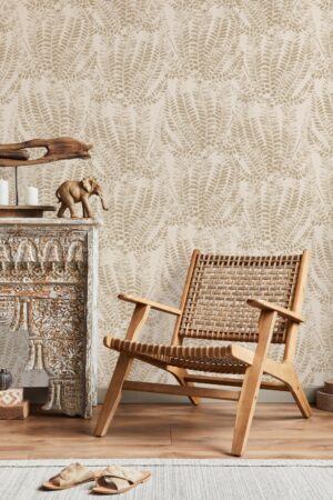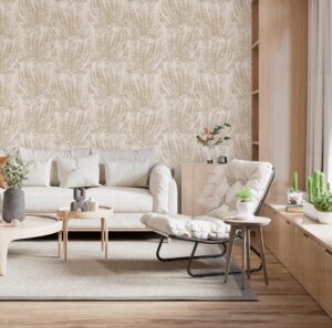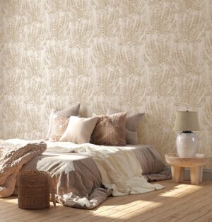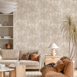 Zarif Eğrelti Otu Yapraklı Bej Rengi Duvar Kağıdı