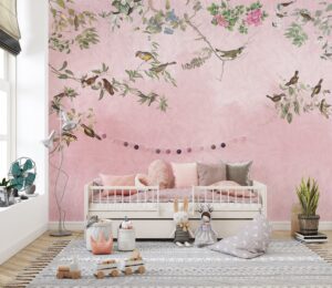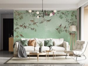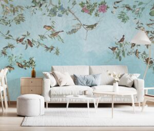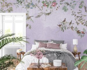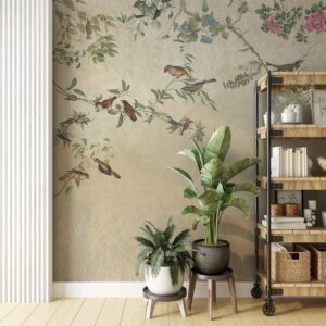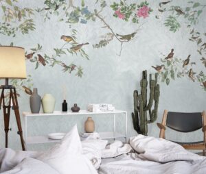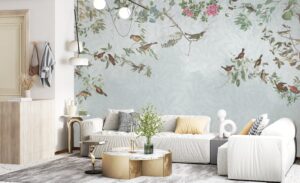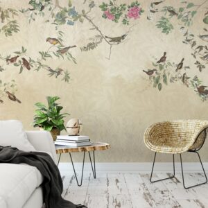 Uçan Kuş ve Çiçek Desenli Duvar Kağıdı